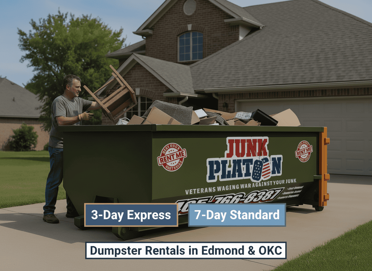 Choosing the right dumpster rental period can save you time, money, and stress. At Junk Platoon, we offer two flexible options for Edmond and Oklahoma City homeowners: our 3-Day Express and 7-Day Standard rentals. Here’s how to pick the perfect fit for your project.