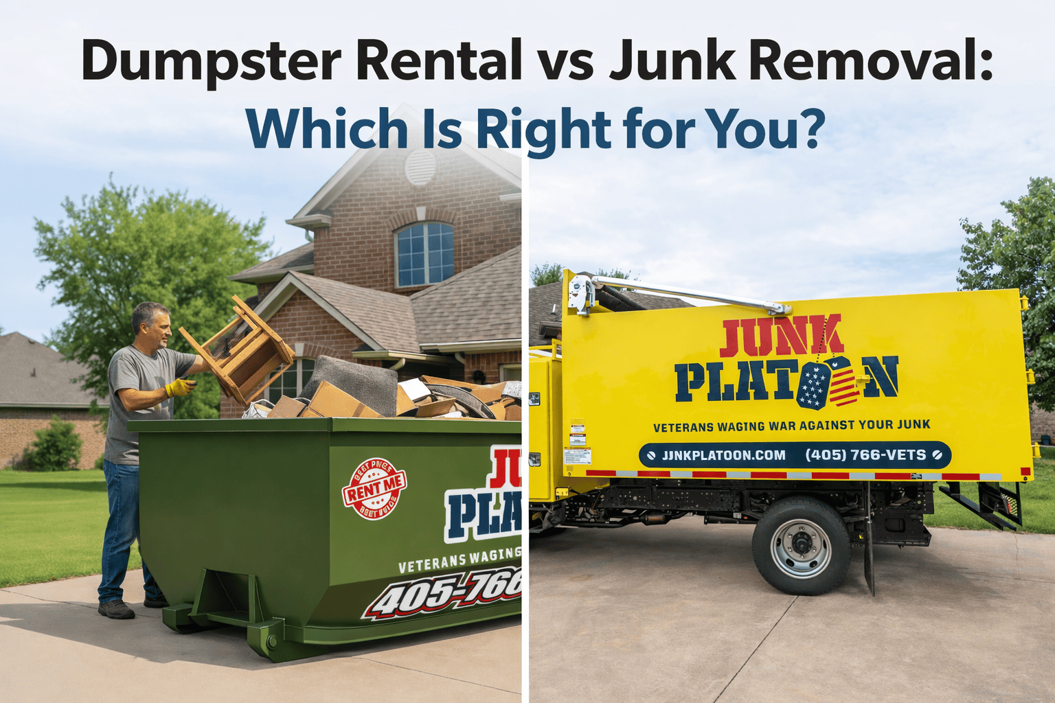 Let’s break down dumpster rental vs junk removal so you can pick the best option for your project in Edmond, Oklahoma City, and surrounding areas.